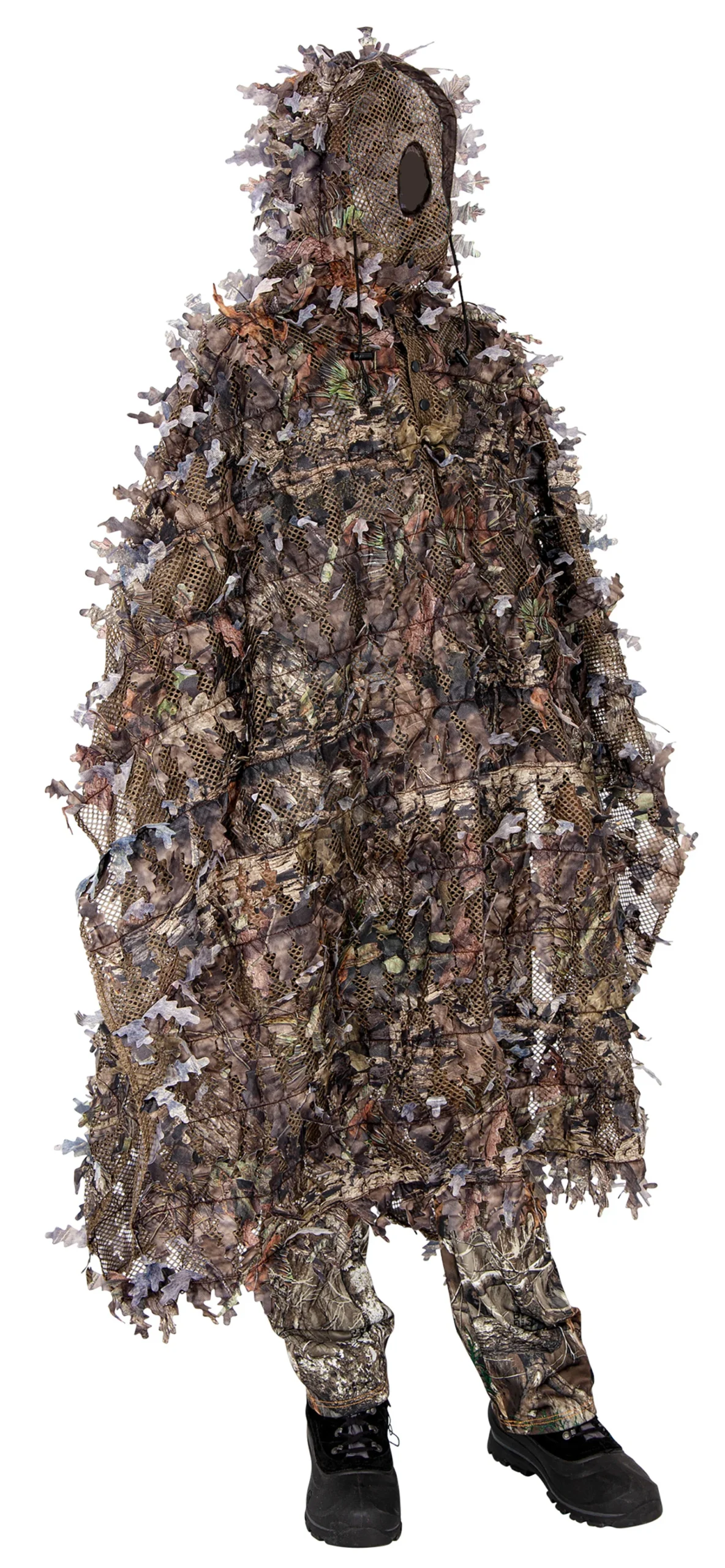 The 3D Leafy Poncho is the ultimate accessory for concealment during your hunt. Made of Mossy Oak camo pattern, the Break-Up Country trim breaks up hard edges for maximum concealment. 3D Leafy Poncho is one size fits most.