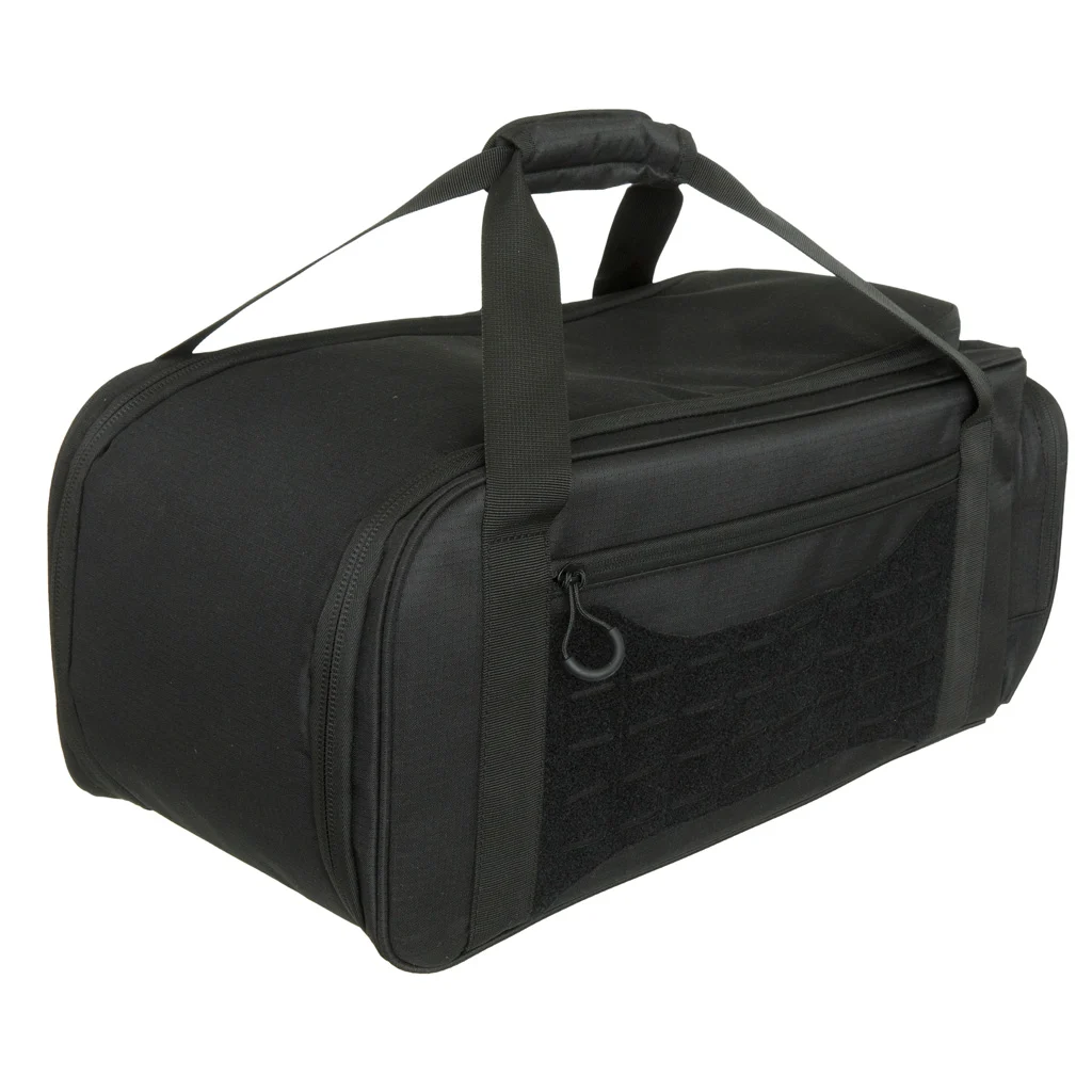 Bob Allen’s Club Series Range Bag is constructed of nylon with padded interior pockets perfect for pistols, wraparound handles with adjustable loops and an adjustable shoulder strap.