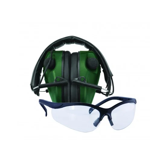Caldwell E-Max Low Profile Electronic Ear Muffs w/ Shooting Glasses – Protect your hearing – Comfortable fit – Adjustable volume control – Audio input jack – Folds compact – Stereo sound – Speakers shut down at noise levels above 85dB – Adjustable nose piece – Blocks 99.9% of harmful UV rays – Impact resistant – Meets ANSI Z87.1 Standards