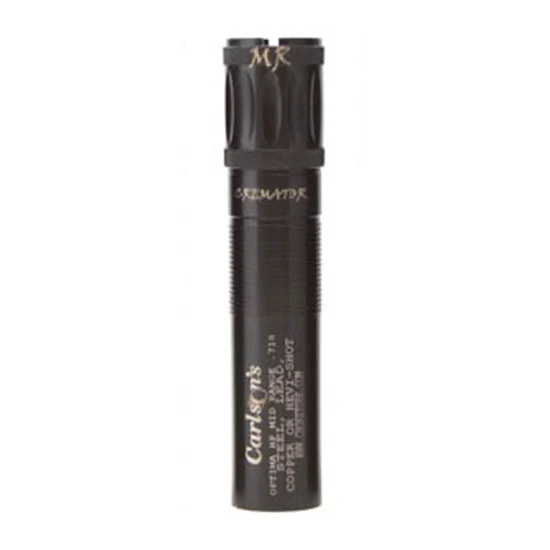 Constriction: Mid Range – Diameter: .718 – These chokes feature our brand new Triple Shot Technology. TST is a series of three graduated rings in the parallel section of the choke that allow a more gradual transition from the shotgun bore to the final constriction that conveys a host of benefits to the shooter like reduced pellet deformation a shortened shot string and less flyers. These choke tubes are non-ported. – You also get all the benefits of an extended choke tube including a 25% longer parallel section for tighter and more dense patterns wrench-less installation and quick removal and muzzle protection. They are offered in your choice of ported or non-ported configurations with a matte black finish. Like all of our tubes the Cremator series carries a lifetime warranty and are constructed out of our premium 17-4 stainless steel. – Combine the spectacular performance of today’s premium ammunition with this breakthrough in choke tube technology and you’ll see why Carlson’s new CREMATOR series of choke tubes is setting the shooting world on FIRE.