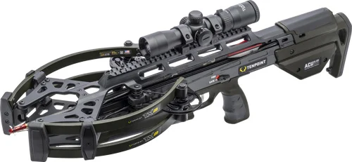 The NEW AT400 composite crossbow from CenterPoint Archery is sure to hit its mark. A full composite stock and rail system provides a lightweight but solid back bone for this crossbow keeping this bow around 8 pounds fully loaded. Easy one bolt riser to rail assembly gets you on the range fast. Includes a detachable silent crank, adjustable ergonomic foregrip, 4x32mm scope, oversized stirrup, and three (3) 20-inch .003 carbon arrows and quiver