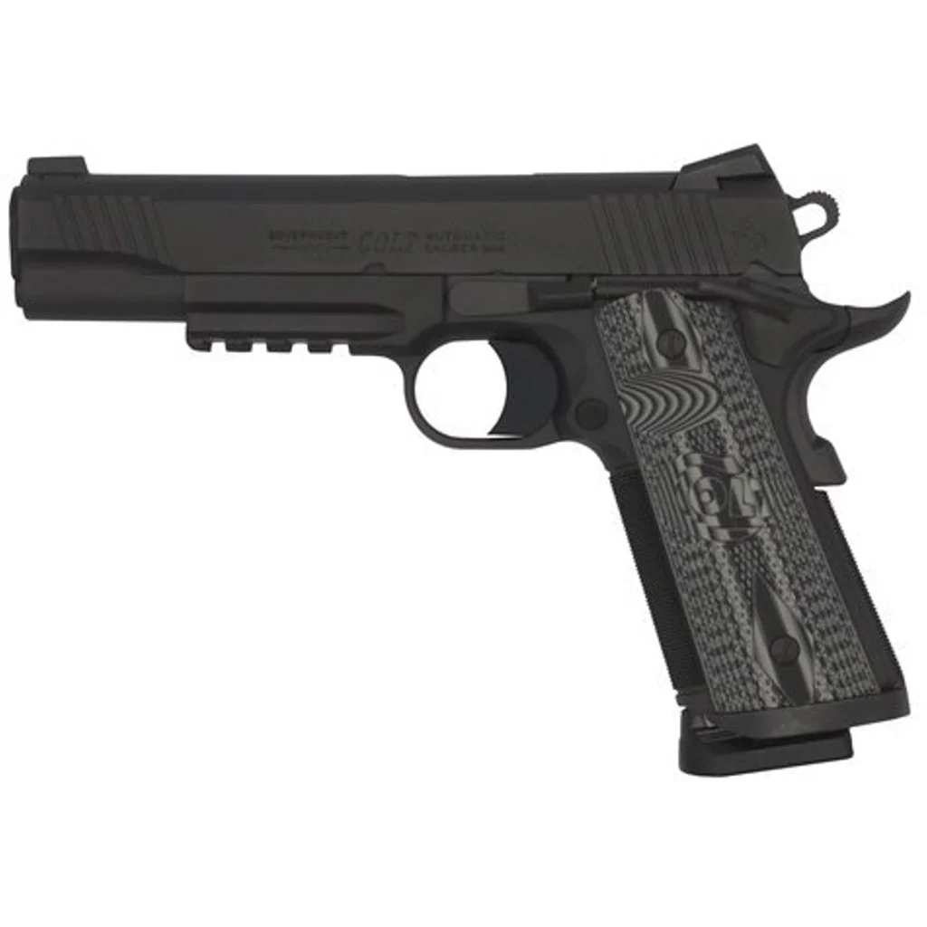 The Colt 1911 CCU Rail Pistol in .45 ACP is designed for superior performance and versatility. Built on a durable steel frame with a matte black DLC finish, this full-size 1911 features a 5-inch barrel and an M1913 Picatinny rail for mounting lights or lasers. Equipped with Novak front and rear night sights, it ensures rapid target acquisition in any lighting condition. The ambidextrous extended thumb safety and beavertail grip safety enhance handling and control, while the extended magwell allows for quick and smooth reloads. The G10 checkered gray grips with scallop texture provide a secure hold, making this an excellent choice for tactical and defensive applications.