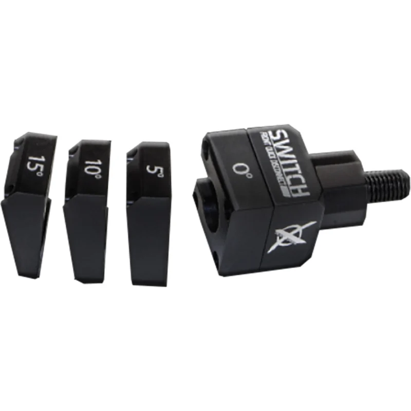 The FQD Switch  features interchangeable face plates in 0, 5, 10 and 15 degrees to adjust the downward angle of your front stabilizer for the ultimate in versatility and customization