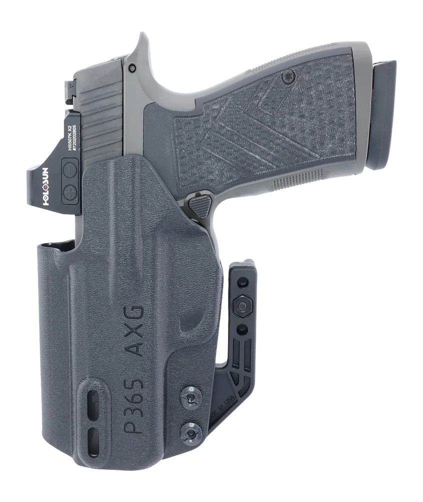 The Cazzuto holster is made entirely of thermo-plastic material and is exceptionally light and compact. Minimal friction between gun and holster results in a smooth draw. The paddle is adjustable for forward to rearward cant. Dual tension device and precise molding give this holster a perfect fit. The Cazzuto Holster also comes with a belt slot attachment if paddle wear is not suitable. The belt attachment will fit belts up to 1.75″.
