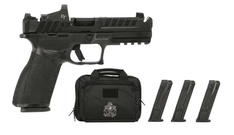 The FMK ELITE 9mm is ergonomically designed for comfortable fit with large and small hands. The stainless steel barrel is engineered to sit low for improved point and shoot accuracy and reduced muzzle flip. The Shock Absorbing Backstrap softens recoil by one full caliber. The Elite trigger has a light pull with a drop-free magazine release. The Glock compatible sight system makes adding 3rd party sights easy. The ELITE features a polymer, textured frame with a beveled magwell for speed loading. The high-carbon steel slide is designed to accommodate mounting of any Burris Fastfire 3, Vortex Viper or Venom, or Trijicon RMR optic. Mounts directly to the slide without any mounting plates. Includes 2 magazines, 2 sets of standard front/rear sights, 2 sets of suppressor height front/rear sights, lockable hard case, and manual. This Elite Pro variant comes with a Burris Fastfire 3 optic. The ELITE has an overall length of 6.85” and weighs 23.45 oz.