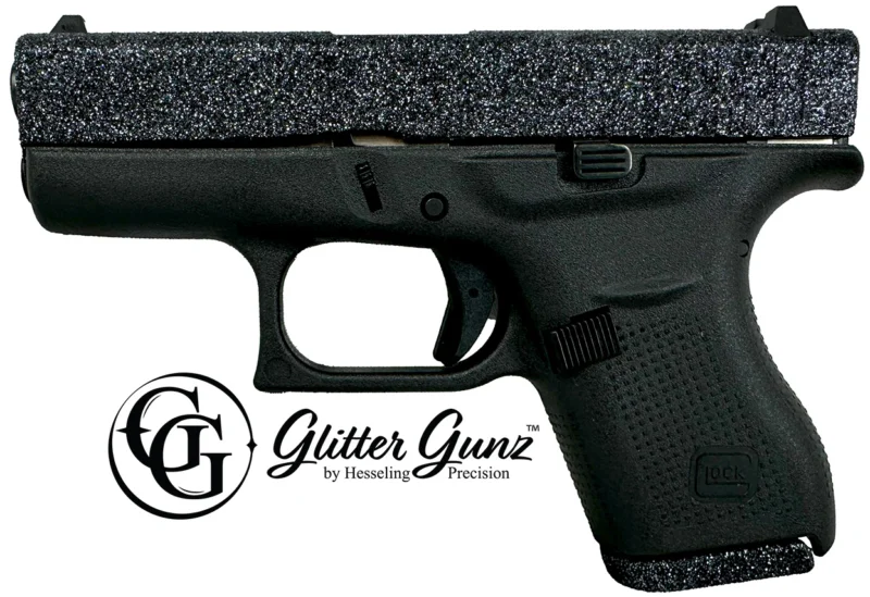 GlitterGunz is a durable sparkling coating applied utilizing specialized equipment and a patent-pending process. The slight tactile texture of the coating provides the user with a non-slip grip making it easier to operate a semiauto handgun’s slide.