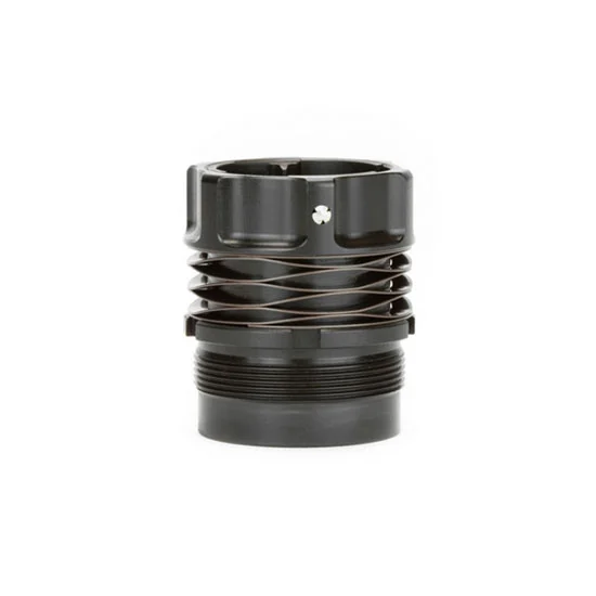 Griffin Armament is proud to introduce DUAL-LOK our newest QD mounting system for rifle suppressors. The DUAL-LOK system is comprised from two components the DUAL-LOK Mount or equipped suppressor and the DUAL-LOK muzzle device (of your choice). This page is for the DUAL-LOK HUB Mount a 1.375×24 threaded interface. – A quality QD system should be accurate robust reliable require minimal training and be free of wear prone metal on metal teeth or ratchets thereby guaranteeing a longer trouble free service life with minimal maintenance needed. Griffin’s DUAL-LOK QD mounting system was designed around these objectives. – What makes this mounting system unique? It is a combination of desirable mechanical features and performance characteristics in a lightweight yet compact system. DUAL-LOK has great potential for widespread product application. A precision taper interface (one locking feature) between the mount and the device ensures accuracy. An ACME thread provides speed and ease of attachment. A robust 17-7 Wave spring (718 inconel on integrated mount Griffin suppressors) provides a reliable and positive heat resistant spring action to the redundant locking collar (second locking feature). The locking collar is semi permanently installed to the mount via factory pressed grooved stainless steel taper pins. Since the mount has no wear prone metal on metal sliding actions like many other mounts there is no need for the operator to disassemble the system. This locking ring includes three anti-rotation splines which ensure the suppressor will not come off inadvertently. The muzzle device integrates 60 machined mounting position grooves which is doubled by the mount’s two locking positions hence the double entendre DUAL-LOK. How is this achieved? The mounts’ two locking positions are machined out of phase of one another by 3 degrees which provides the 120 effective locking positions and ensures a tightly mounted and locked suppressor. When the suppressor is installed only one of the two positions will generally function by allowing the spring to push the locking collar rearward over the splines. – Substantial efforts are taken in the manufacturing and inspection of the DUAL-LOK products to ensure Griffin customers are outfitted with the best QD mounting systems available. – Diameter: 1.5 [unit] with 1.375×24 [threads] – OAL: 1.7 – Weight: 3.0 ounces – Materials: 17-4PH stainless steel 17-7 stainless spring steel – Finish: Black Nitride – Key points : – Utility patent is pending – Wear free mounting system requires no consumable parts – Taper lock interface ensures security and accuracy – ACME thread provides speed of attachment – Locking ring incorporates 3 anti-rotation splines to eliminate inadvertent loosening – 120 effective positions ensure a rock-solid suppressor mount and provide extremely low POI shift – 17-4 stainless steel – Robust wave spring – 2 Locking positions and a central unlock position – Nitrided black for increased surface hardness corrosion and wear resistance – Compatible with : – DUAL-LOK Minimalist Brake – DUAL-LOK Minimalist Stealth Flash Suppressor – DUAL-LOK Paladin Brake – DUAL-LOK Stealth Flash Suppressor (2.25) – DUAL-LOK Tactical Compensator – DUAL-LOK Titanium Minimalist Brake (6AL4V) – Griffin Bushwhacker EXPLORR EU (Utility) models & other 1.375×24 threaded suppressors