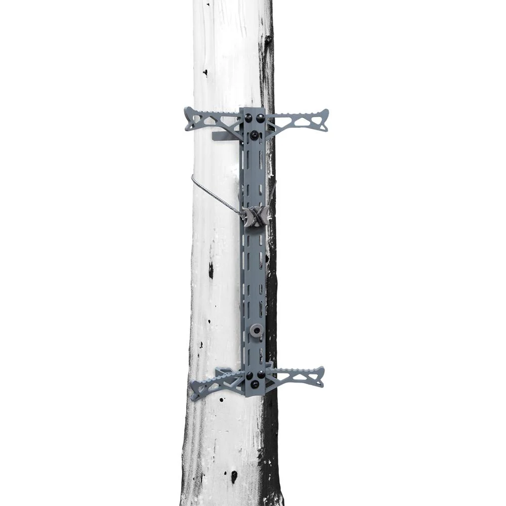 The climbing stick features an angled footpeg design for easier climbing enhancing overall stability and comfort. It includes the new Hawk Button with a lightweight Helium Rope for quick and secure setup. The Silent Stack nesting system ensures quiet storage and transport. Constructed from aircraft-grade aluminum with weight-saving cut-outs this stick is both strong and lightweight. Dual-sided traction-grabbing steps provide added stability while overmolded tree attachment hooks limit noise during setup. The TreeDigger teeth bite into the bark for superior stability on the tree. Each stick is 20” long with a 10” step width weighs just 2.5 lbs. and supports a weight capacity of 300 lbs.