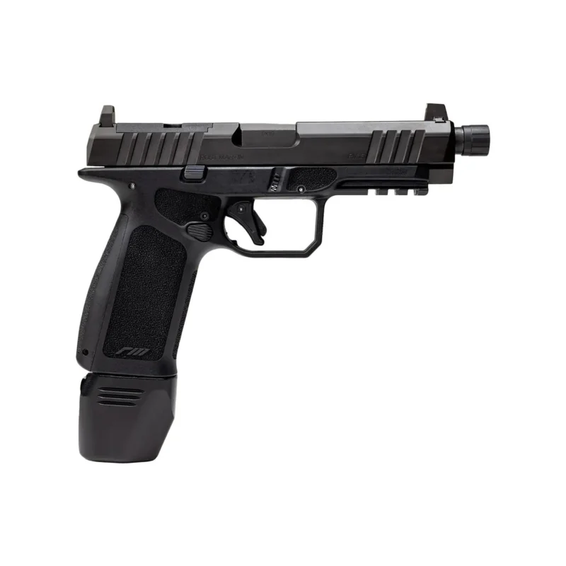 The AMPX is the evolution of the AMP. A longer grip taking a standard Glock® 17 magazine. This Aluminum Match-Grade Pistol was designed by a team of engineers competitive shooters and law enforcement with the purpose of developing the ultimate mission ready pistol that they would depend their own life on. The Fire Control Unit is precision CNC machined out of heat-treated 17-4 Stainless Steel. This design allows for the rails to be machined perfectly flat to each other and held to a .0005 specification to reduce any unnecessary play seen in many traditional firearms. The AMP’s aluminum milled frame reduces flex and recoil while shooting. The skeletonized 1911-angled grip frame allows for custom and aftermarket grip panels to modify for an intuitive and reliable grip. The frame features an extended beavertail that allows the pistol to sit lower and more comfortably in the shooter’s hand for better recoil control and improved accuracy. The trigger barrel slide sights and most internals are Glock® compatible. The AMP slide is machined with stepped quad windows and deeper serrations on the slide to enhance grip reduce weight and improve cycling speed. The slide comes standard with an RMR optic cut to directly mount a sight without cumbersome plates or adapters. The match-grade nitrided fluted barrel is honed burnished to an 8-micron finish and rifle cut for unparalleled accuracy. Whether it be giving you the next competitive edge on the field or the security you need for home defense. The AMP (Aluminum Match-Grade Pistol) is ready for any mission.