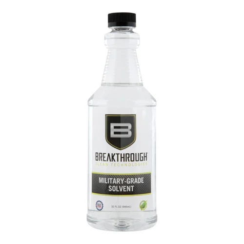 Our Breakthrough Clean Technologies® Military-Grade Solvent is a user-safe multi-purpose cleaner and degreaser that helps remove oil, grease, and carbon build-up, giving you a no residue clean. Unlike other aromatic cleaners, our odorless formula allows you to clean indoors without having to deal with noxious and unpleasant fumes. Breakthrough Clean Technologies® Military-Grade Solvent cleans quickly and efficiently while reducing the frequency needed between cleanings. It will not stain your wood, plastic, or polymer components and is also safe on Cerakote and hydro-printing. Breakthrough Clean Technologies® Military-Grade Solvent is a benzene-free, HAP-free, state-of-the-art solvent designed to help users break out of the tangle of regulations regarding emissions, disposal, and industrial health hazards. Our Breakthrough Clean Technologies® Military-Grade Solvent is an odorless, low toxicity, high-purity hydrocarbon that exhibits a very low degree of irritancy to the eyes and is non-irritating to the skin. It has a low vapor pressure to control Volatile Organic Compound (VOC) emissions, is non-carcinogenic, and is not regulated under SARA, Title III, Sections 302 or 313, CERCLA, and RCRA requirements. Breakthrough Clean Technologies® Military-Grade Solvent has no listed components and characteristics of hazardous waste per the EPA. Breakthrough Clean Technologies® Military-Grade Solvent has been awarded a complete Toxicity Clearance by the U.S. Army Center for Health Promotion and Preventative Medicine.