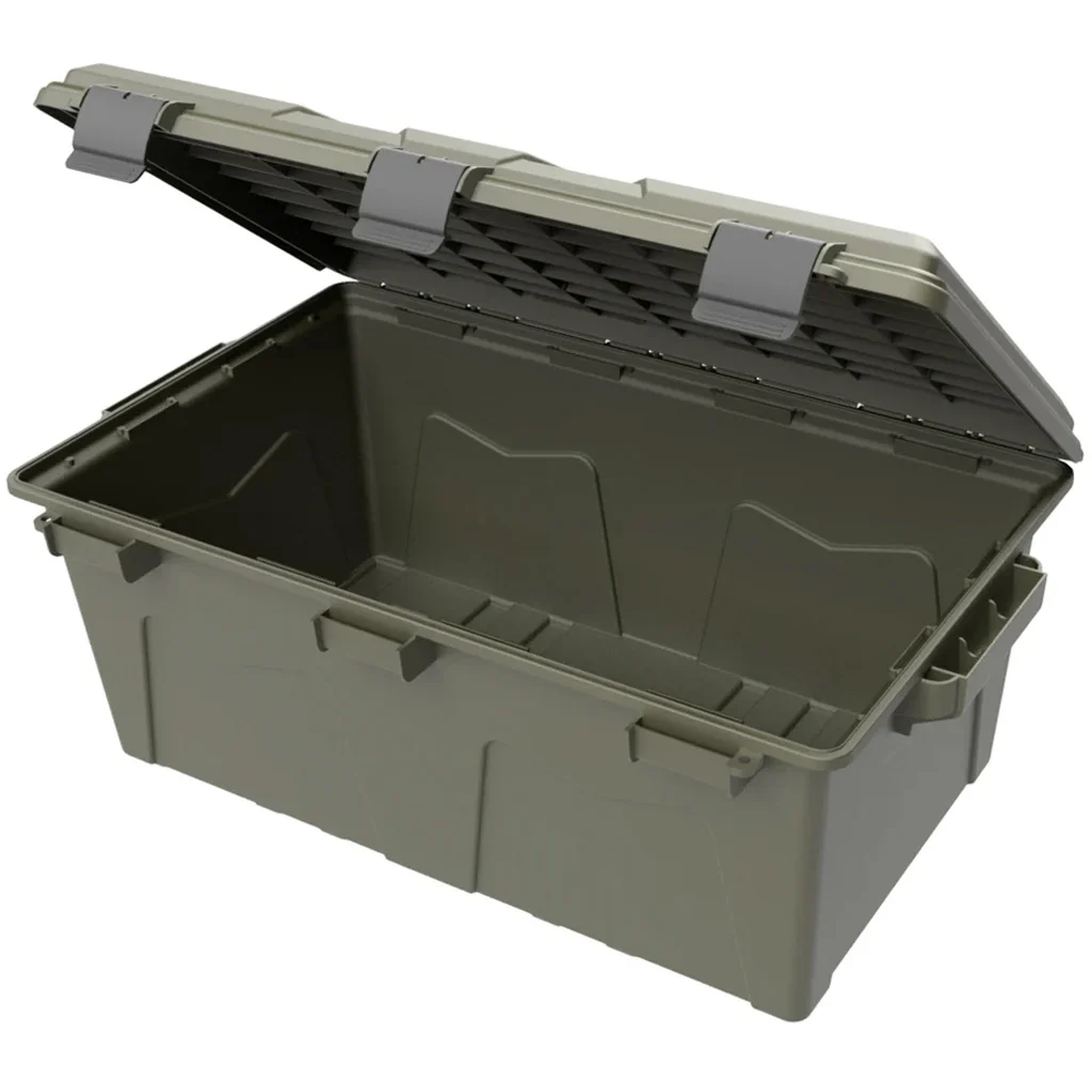 The MTM Gear Crate in Army Green is a durable storage solution offering 52 quarts of capacity to keep your gear clean, dry, and protected from harsh conditions. Designed for convenience, it features comfortable integrated handles and is stackable with the new ACDC50 crate for efficient organization. With rugged construction and ample space, this crate is ideal for storing bulky items and ensuring they are ready to go when you are.