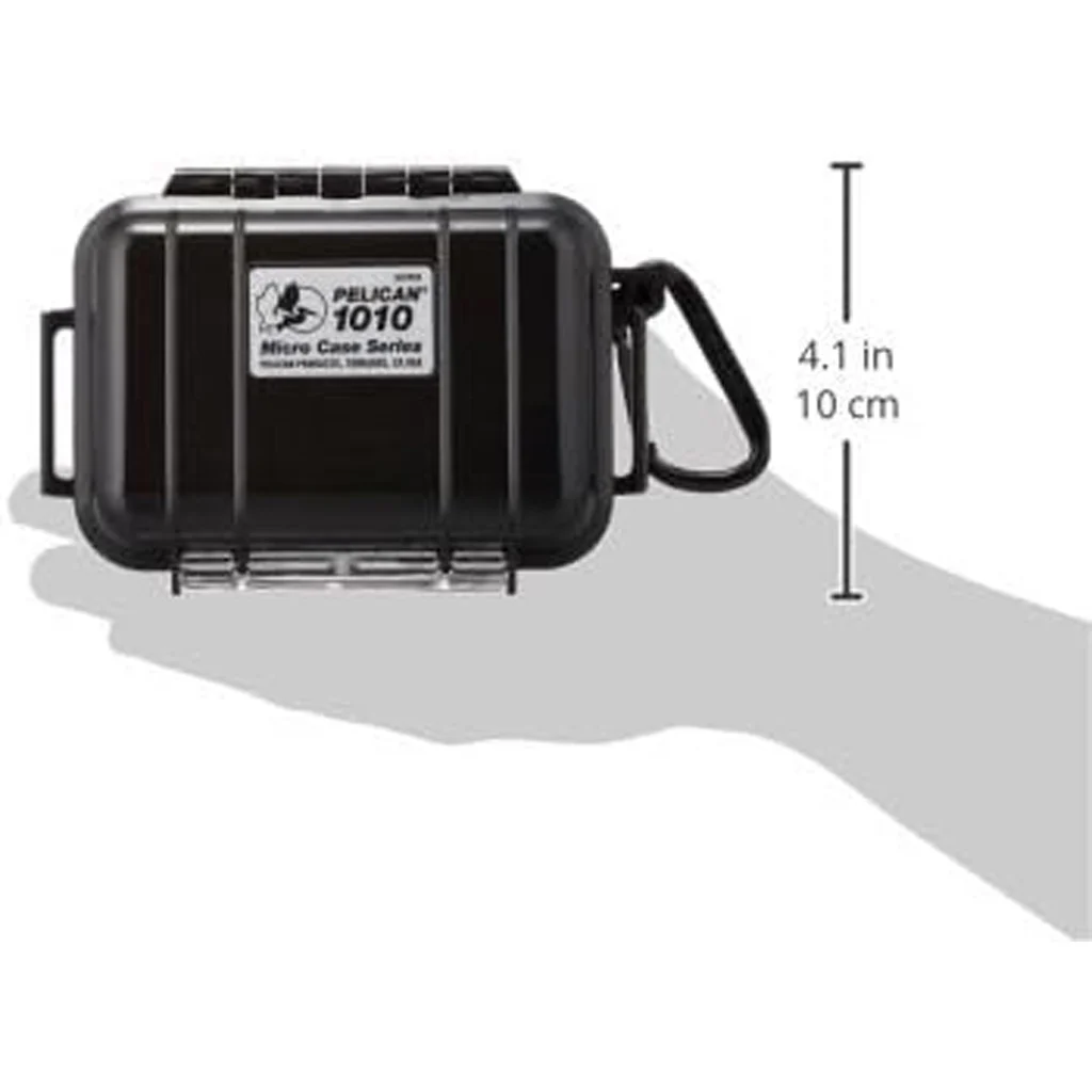 The 1010 Micro Case provides sealed protection for small electronics and sensitive gear in a compact, crushproof housing. Its watertight design meets IP67 standards, allowing submersion to about 3.3 feet for up to 30 minutes. A rubber liner adds impact protection and functions as an o-ring seal to maintain a tight closure. The case features an easy open latch and integrated carabiner attachment for secure carry and quick access.