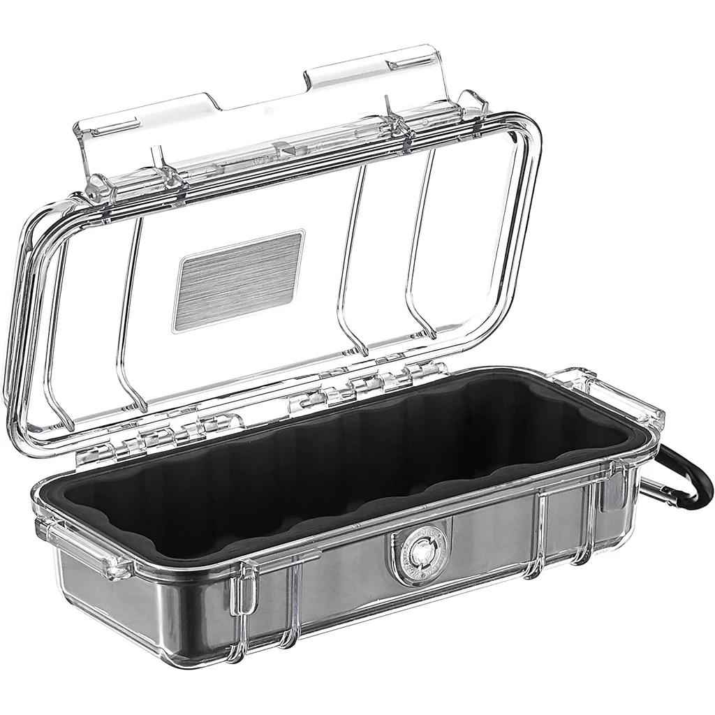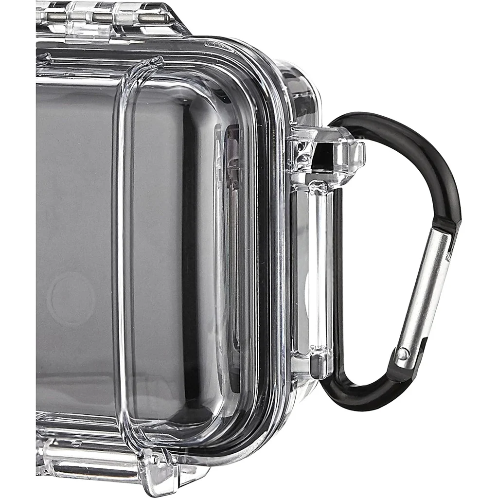 The 1030 Micro Case protects small electronics and sensitive gear in a compact, watertight, crushproof, and dustproof housing. Rated to IP67, it can be submerged to about 3.3 feet for up to 30 minutes while the rubber liner doubles as an o-ring seal for added protection. An automatic pressure equalization valve helps balance interior pressure while keeping water out. The case features stainless steel hardware, an easy open latch and an integrated carabiner.