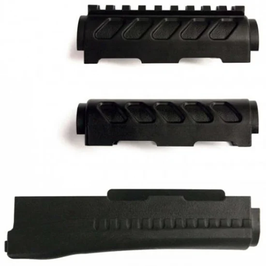 Forend designed to fit all short forend AK’s – Set of four (4) pieces: – A lower hand guard – Two (2) upper hand guards (one with integral 12 o’clock position picatinny rail) – Internal heat shield – Designed for comfort and control – Lower hand guard has a comfortable swell and grooved for grip control – Upper hand guards are aggressively grooved allowing a firm grip by the off hand – Forend is suitably ventilated for heat dissipation – M1913 Picatinny rail length is 3.75 – Constructed of our legendary high strength carbon fiber and glass reinforced black polymer – 922(r) compliant – Lifetime Warranty – Made in USA – The Archangel OPFOR AK-series forend is designed for all short forend AK’s. Comprising four (4) pieces: a lower hand guard two (2) upper hand guards (one with integral 12-o’clock Picatinny rail) and an internal heat shield; the hand guards are constructed of our legendary high strength carbon fiber and glass reinforced black polymer. The lower hand guard has a comfortable swell and is grooved for grip control; the upper hand guards are aggressively grooved allowing a firm grip by the off hand. The forend is suitably ventilated for heat dissipation. Designed for comfort and control. M1913 Picatinny Rail length is 3.75 inches. 922(r) Compliant. Lifetime Warranty. Made in USA.