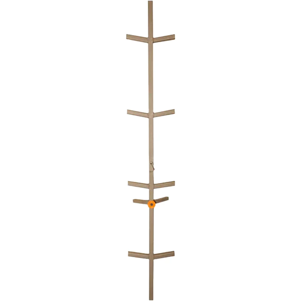 The Rhino Hot Foot Climbing Stick is comprised of six 4-foot sections, each with angled steps for secure and effortless climbing. The design includes extended tree braces for additional stability and safety. The climbing stick is held firmly in place with six looped button straps, providing peace of mind as you ascend. It adheres to ASTM standards, ensuring quality and safety, with a weight capacity of 300 lbs.