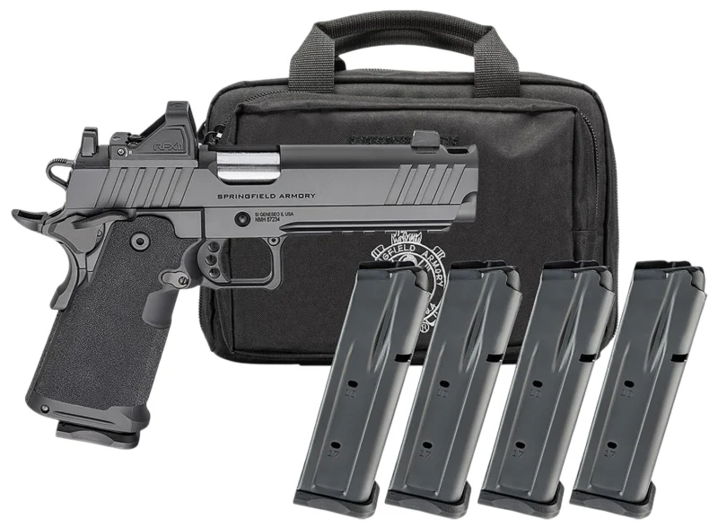 PS2400 Limited Match 1911-A1 features a Rock River Arms National Match frame with a beveled magwell, forged slide, Match aluminum speed trigger, throated barrel, Dovetail front sights and low mount hidden Leaf rear sight. Other features are a lowered and flared ejection port; flattened and 40 LPI serrated top; 40 LPI checkered undercut trigger guard; flat mainspring housing with LPI checkering; Beavertail grip and ambi thumb safety; extended mag release button; Match Commander hammer and sear; two piece recoil guide rod. Includes one magazine.