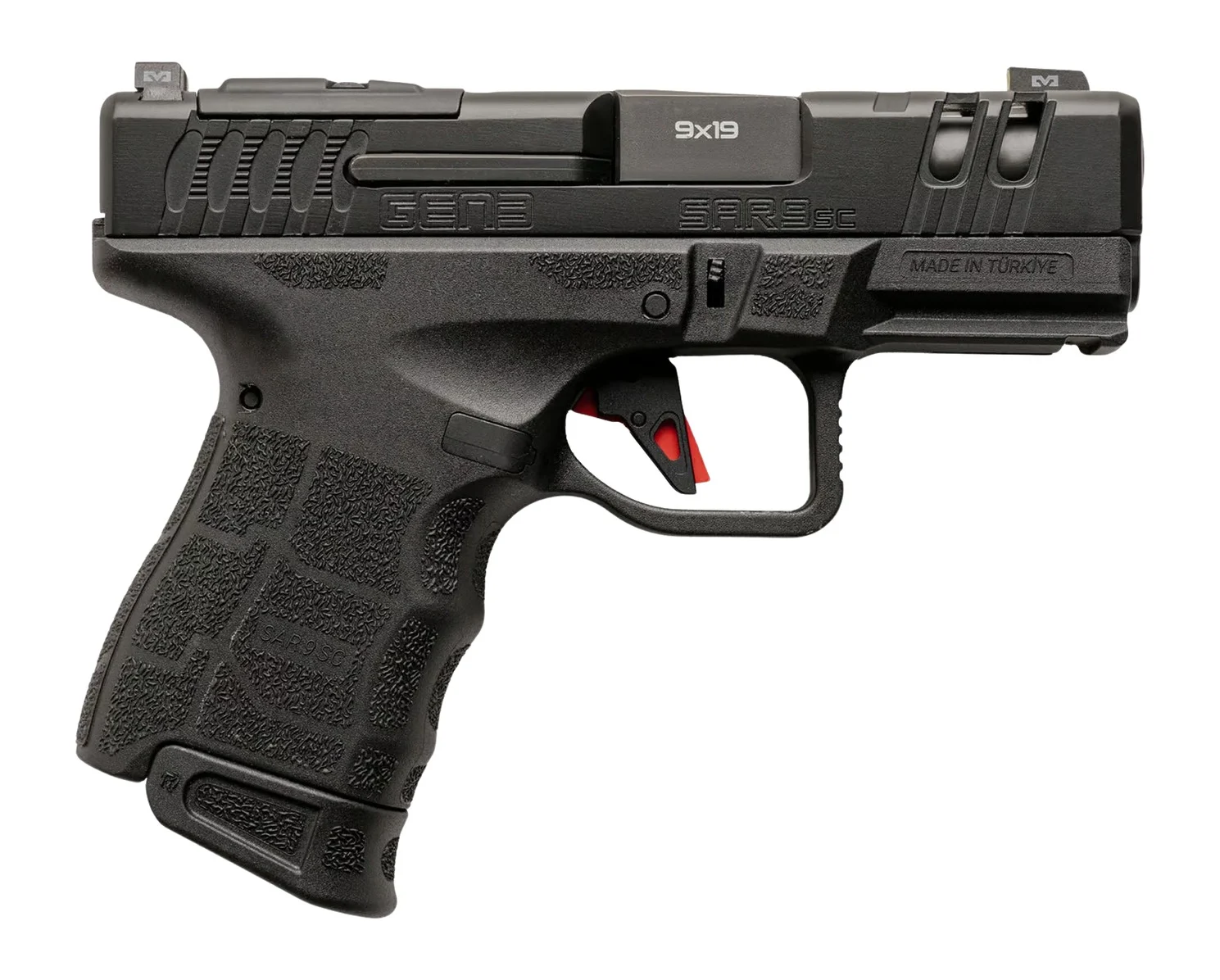 • Fixed front and rear sights are integral to the slide while the hammer is recessed within the slide.