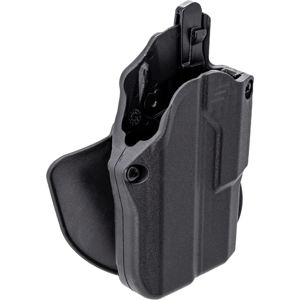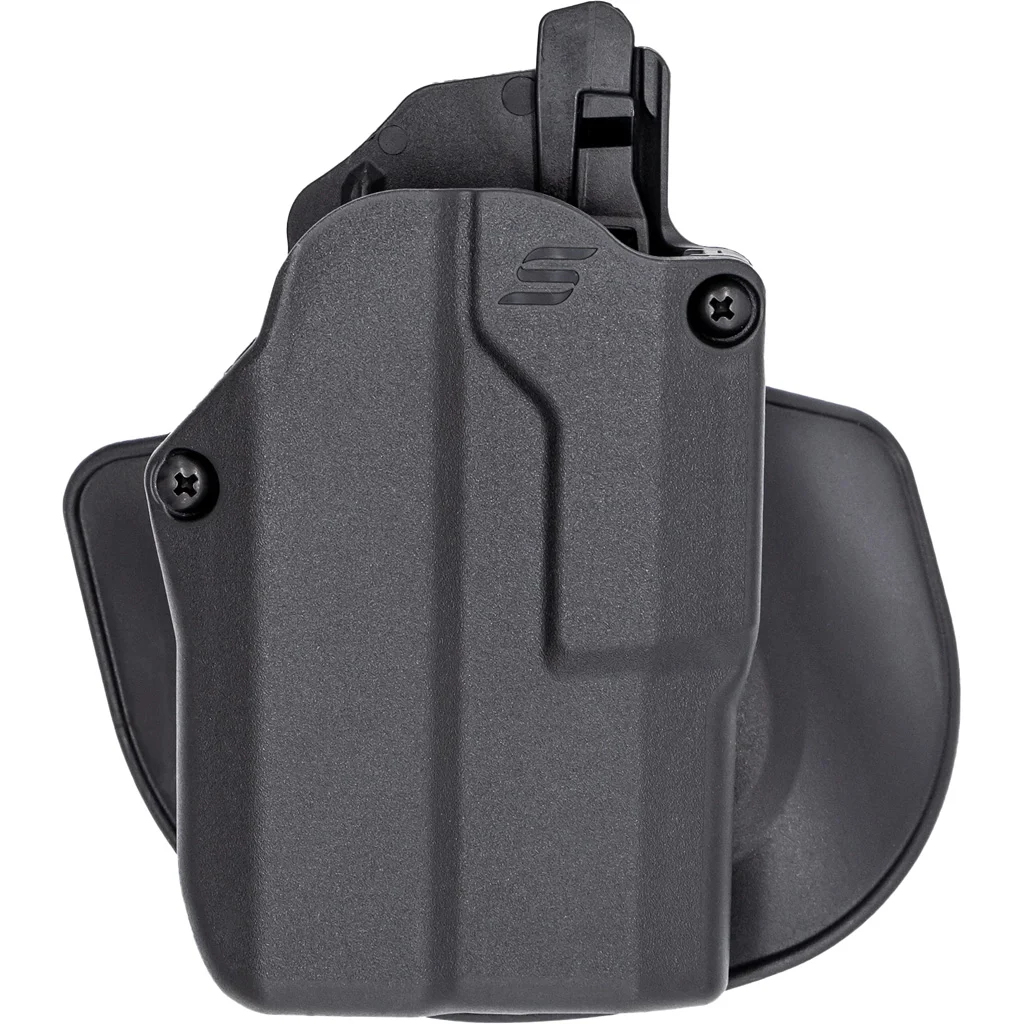 The Safariland Solis ALS Concealment OWB Holster is designed to offer both security and quick access to the firearm. It features the Automatic Locking System (ALS) for securely locking the weapon in place upon holstering and allows a natural and fast draw with a thumb release. The Solis is compatible with most compact red dot sights and subcompact lights. It is crafted from a durable, weather-resistant SafariSeven nylon blend that won’t scratch or damage the firearm’s finish. The open muzzle end design of the holster facilitates easy removal of debris and can also accommodate threaded barrels. Note that this holster does not fit the RMcc.