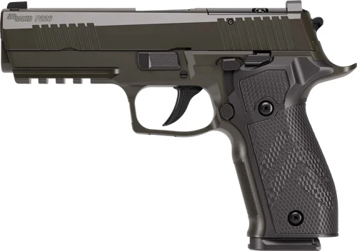 The P320-XFull’s 4.7″ slide and barrel offer unparalleled accuracy and comfort without sacrificing the ability to carry concealed. The grip module is compatible with the removable magwell and grip weight and is designed with an extended beavertail and deep undercut for a high grip and better recoil control. The XRay3 day/night sights offer high visibility in all lighting conditions and the rear sight plate assembly allows the direct mounting of the Romeo1PRO optic, as well as the popular PRO RX Footprint. Includes two 10rd magazines.