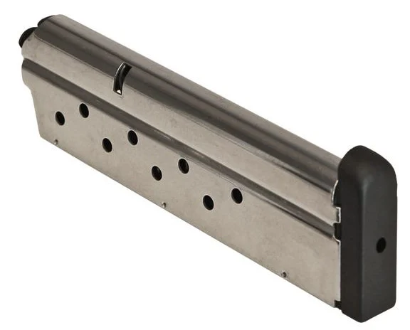 9-round magazine for the SIG SAUER 1911 pistols chambered in 9mm. – Note: Images may differ slightly from the actual product. Our high-quality magazines are sourced from multiple manufacturers and are then made to our exact specifications because of this there may be slight differences in stamping and finish color. – Specifications – SKU MAG-1911-9-9 – Brand SIG SAUER – Model 1911 – Firearm Type Pistol – Magazine Type Single Stack – Caliber 9mm Luger – Magazine Capacity 9 Rounds – Magazine Material Stainless Steel – Baseplate Material Polymer – Finish Stainless – Witness Holes Side Witness Holes – Pistol Size Full-Size