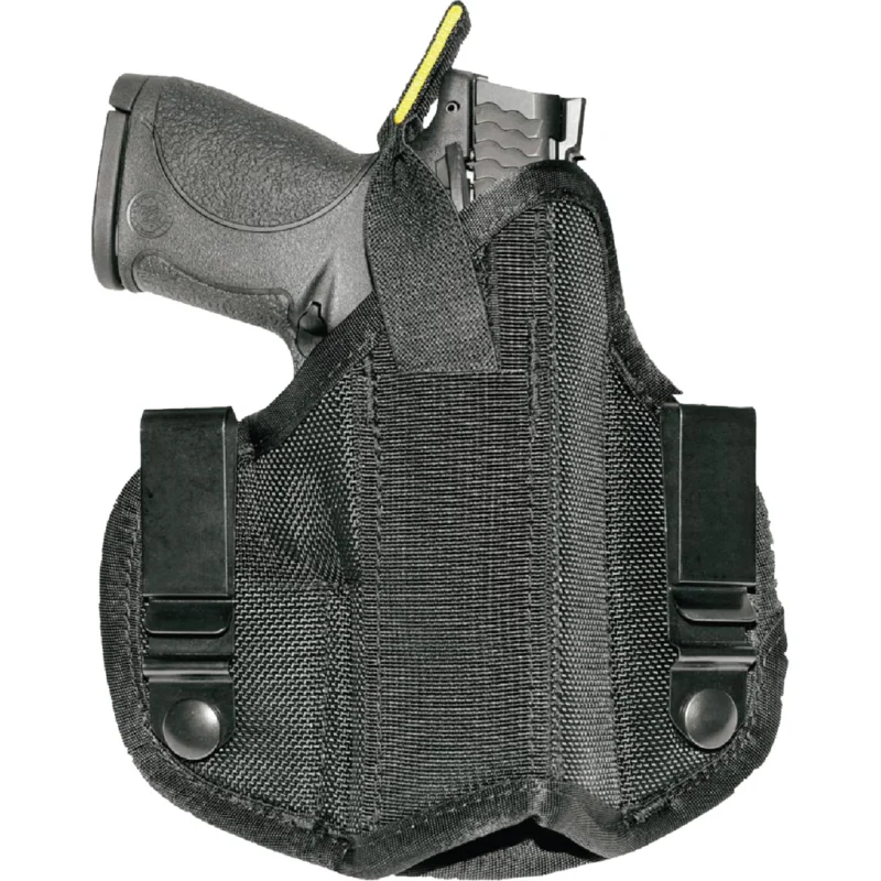 The P365-XMACRO IWB BlackPoint Tactical holster has been designed to be a minimal appendix carry holster that can be easily configured to be worn comfortably in any IWB, strong-side position. It features a concealment strut that acts as a lever on the holster against the inside of the belt, pressing the firearm’s grip into the body and aiding in concealment. The concealment strut has built-in height adjustment allowing it to be moved to match the users belt height. Features an adjustable double-finger metal belt clip to prevent unwanted removal. This holster has a factory optic relief cut to allow the use of ROMEOZero where desired. The screws underneath the trigger guard allow the user to easily adjust the tension on the holster within a set range. The belt clip rides on a strong custom formed Kydex wing for more comfortable carry, allowing the holster to flex just the right amount.