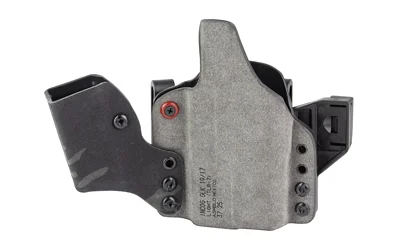 An ergonomic, mission-adjustable, RDS-compatible, multi-positional, deep concealment IWB hybrid thermoplastic holster. Its distinctive features enable concealed carry for a wide range of handgun fits from various carry positions while allowing a full firing grip prior to drawing. The design includes passive retention and adjustable tension, enabling a finely tuned fit and smooth draw. This evolution of the IncogX features a series of clips that provide more adaptability to the user while maintaining the original goals of improved grip, concealment, and function. The clips open outward and slide down with the holster, naturally locking over the belt. An actuated finger tab flexes to open, allowing quick installation or removal from the belt. An improved clip strut design combines functionality with customized concealment shims that can be easily installed or removed without tools. All IncogX models come with clip strut shims in three different concealment sizes: 1/8″, 1/4″, and 3/8″.