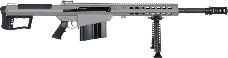 The Thompson 1927-A1 has a pinned Cutts compensator, which lengthens the finned barrel length to 18″, and puts the overall length for the carbine at 41″ from buttstock to muzzle. It has a blade front and open rear adjustable sight. The fixed stock is crafted in luxurious polished American Walnut and has a vertical foregrip.