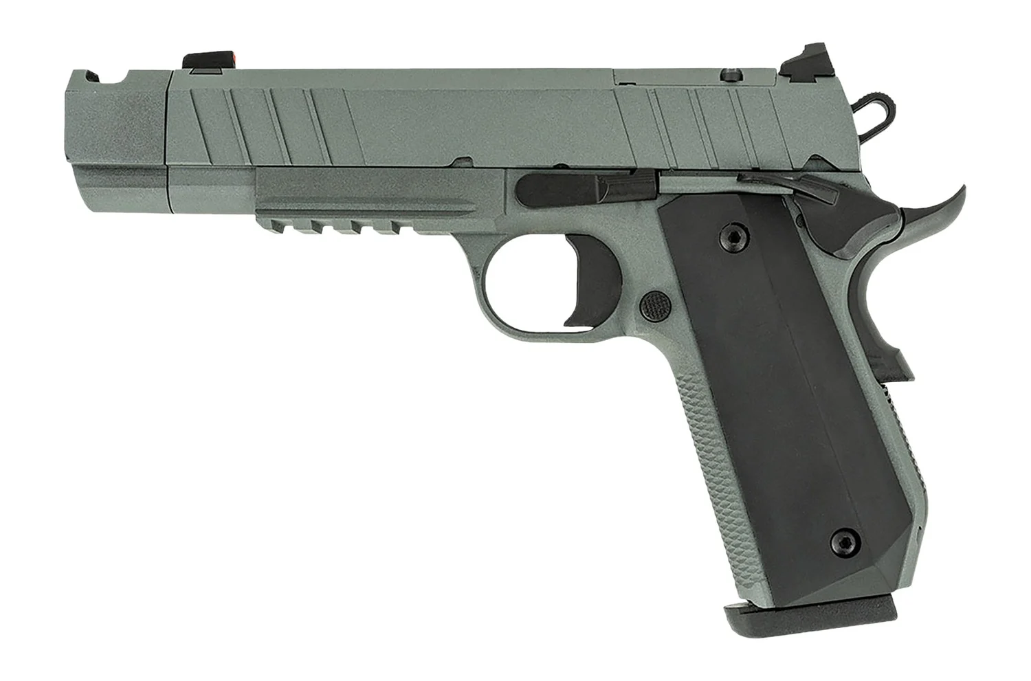 Tisas Arms 10100135 1911 Night Stalker Carry 45 ACP 8+1 4.25″ Black Bull Barrel, Gray Cerakote Carbon Steel Serrated Slide, Gray Cerakote Carbon Steel Frame w/Beavertail & Picatinny Rail, Black Rubber