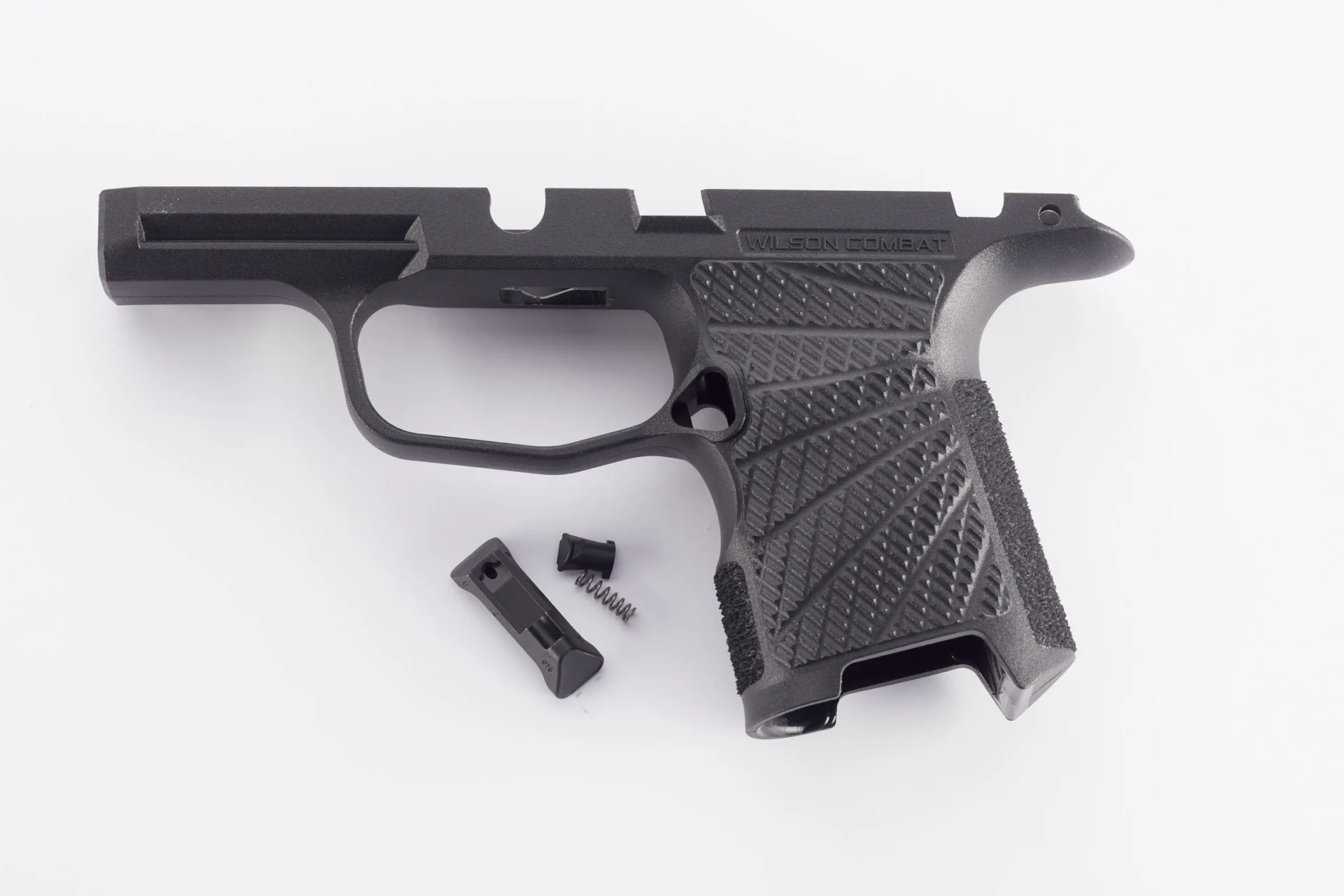 Revolutionize your shooting experience and upgrade the concealed carry potential of a SIG-SAUER P320 with the black Wilson Combat WCP320 no manual safety X-compact grip module. Their all-new molded polymer grips will not only improve your grasp on the gun but also control recoil better than before. Wilson Combat SIG SAUER Grip Modules are not compatible with California versions of the SIG SAUER P320.